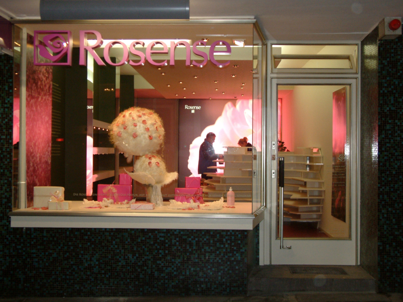 der »rosense« kosmetik shop ist – obwohl nur ein geschäft mit kleiner verkaufsfläche – eine art deutscher flagship store für den türkischen mutterkonzern. das ladengeschäft im zentrum von frankfurt am main ermöglicht dem kunden eine intensive beschäftigung mit der marke und deren produktvielfalt und lädt zum ausgiebigen probieren ein.