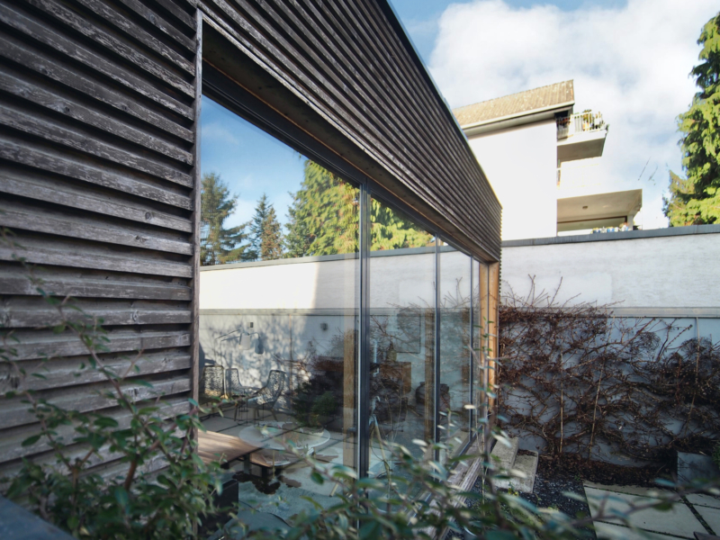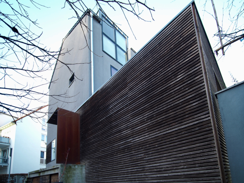 mit dem umbau und der erweiterung der doppelhaushälfte (baujahr 1906) wurden die zugangssituation und die ausrichtung der wohnräume verbessert. das neue wohnzimmer im rückwärtigen anbau öffnet sich zu dem kleinen hausgarten.